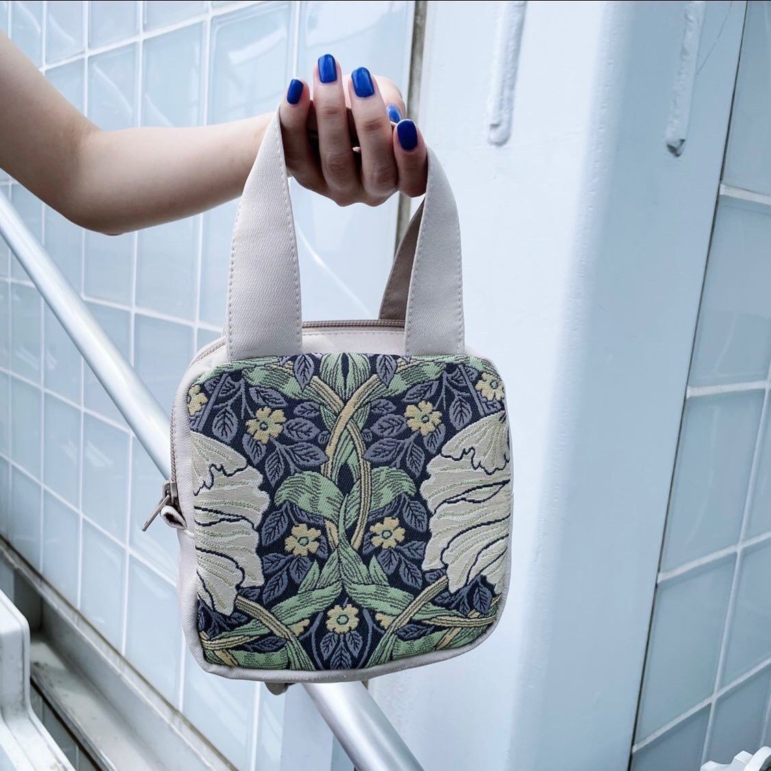 リバティの生地といえば薄手のタナローンのイメージがありますが、今回こちらは川島織物のジャガード生地を使用しております。プリントではなく織りで柄を作っているので、立体的で光沢があり美しいです。